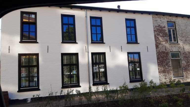 De bestaande kozijnen zijn zorgvuldig hersteld, waardoor vervanging niet nodig was en het karakter van de woning behouden bleef.